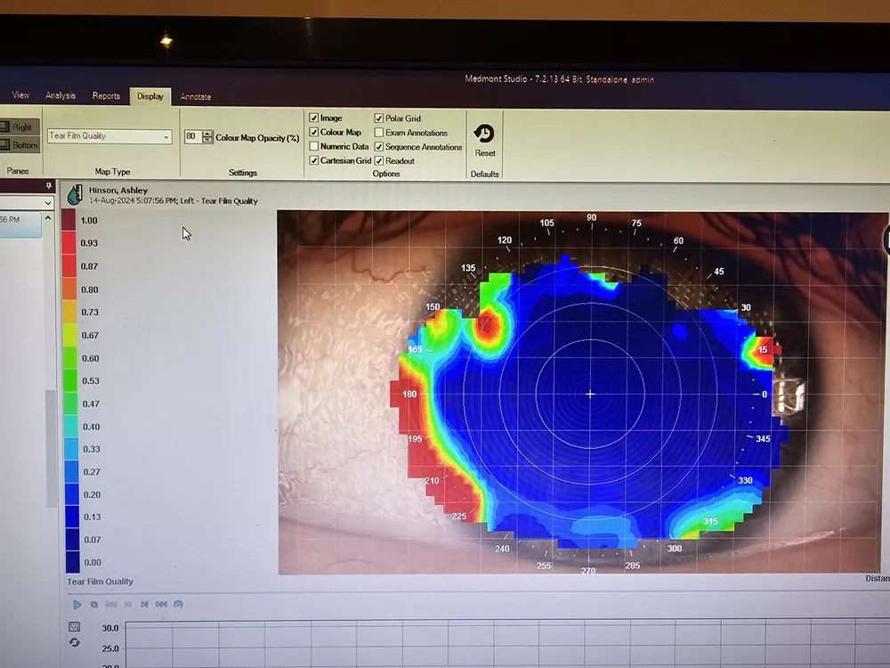 Get the relief you need from dry eyes with a professional assessment, diagnosis and personalised treatment plan carried out by one of our specialist optometrists and taking place in the comfort of our friendly practice. Within your 45 minute consultation, we will take the time to gain a comprehensive understanding of your medical history and assess the severity of your eye condition using OSDI (Ocular Surface Disease Index). We will then conduct a tear film assessment in order to determine a suitable and effective treatment plan.